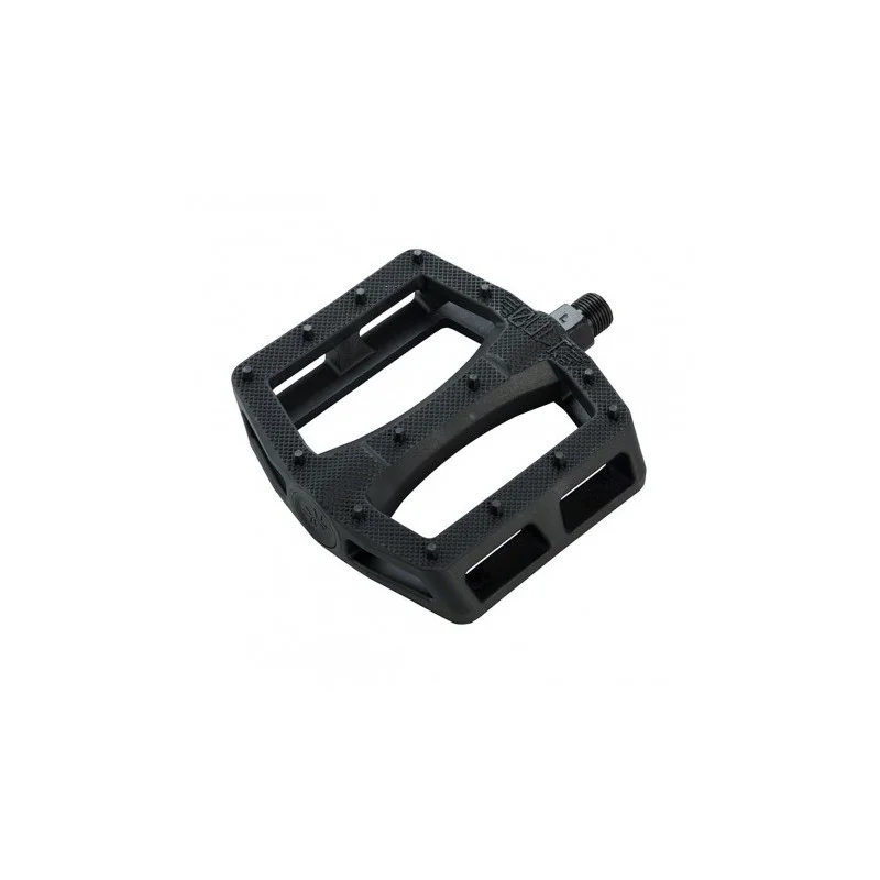 Pédales BMX CULT DAK dessinée par Dakota ROCHE. Pédales à la fois slim avec une surface large. Axe en Chromoly 4130 traité thermiquement: 14 picots plastiques moulés de forme hexagonale de chaque côté pour une accroche parfaite.